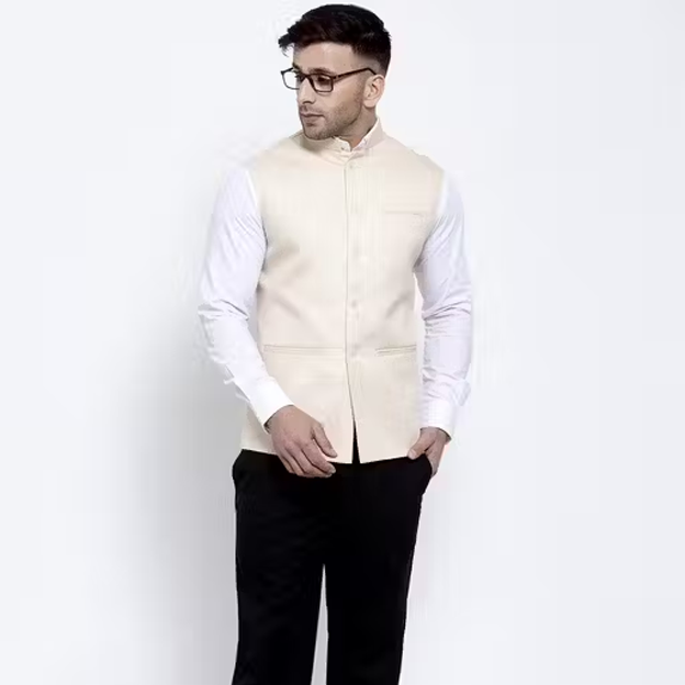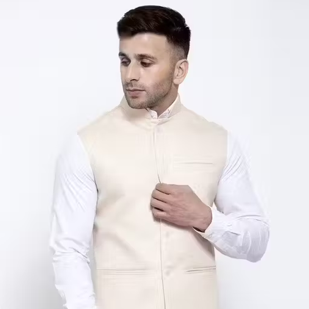 Add a touch of tradition with this Cream Khadi Linen Fancy Ethnic Suit for Men. Crafted from breathable linen fabric, it features a sleeveless design ideal for festive occasions, ethnic gatherings, or weddings. The subtle cream shade and smooth finish offer a regal appeal, making it a perfect choice for men who appreciate cultural elegance blended with modern charm.